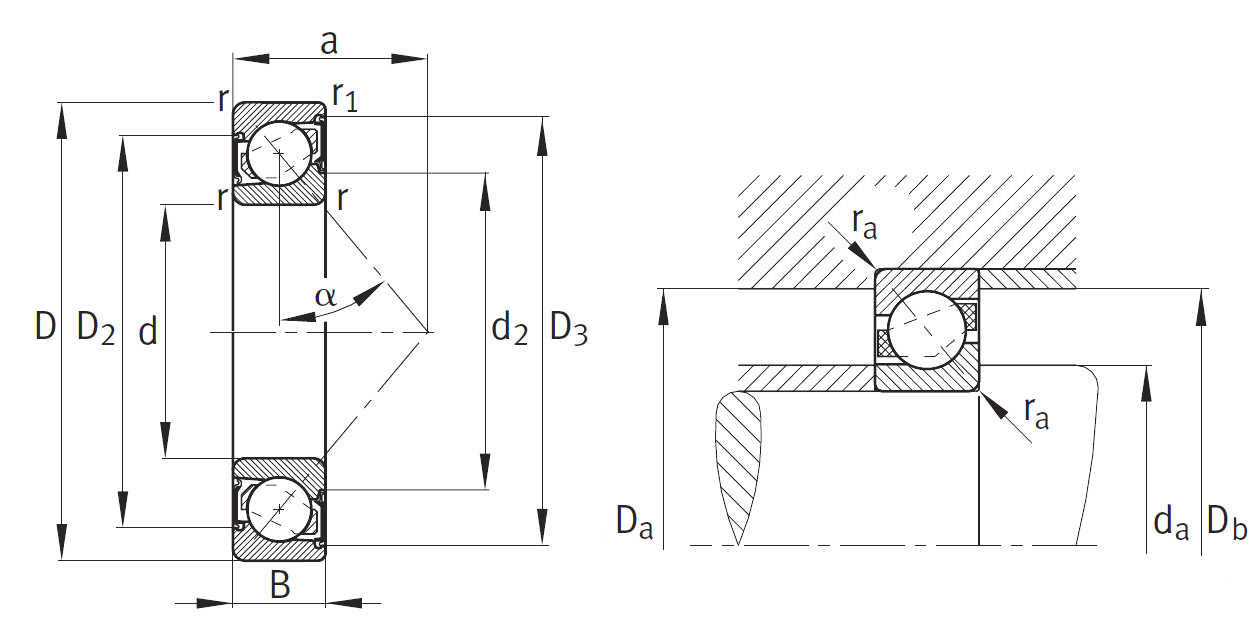 Подшипник радиально-упорный шариковый 7306 BTVP 30×72×19 мм FAG